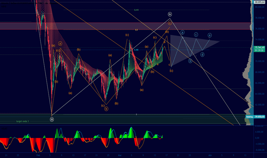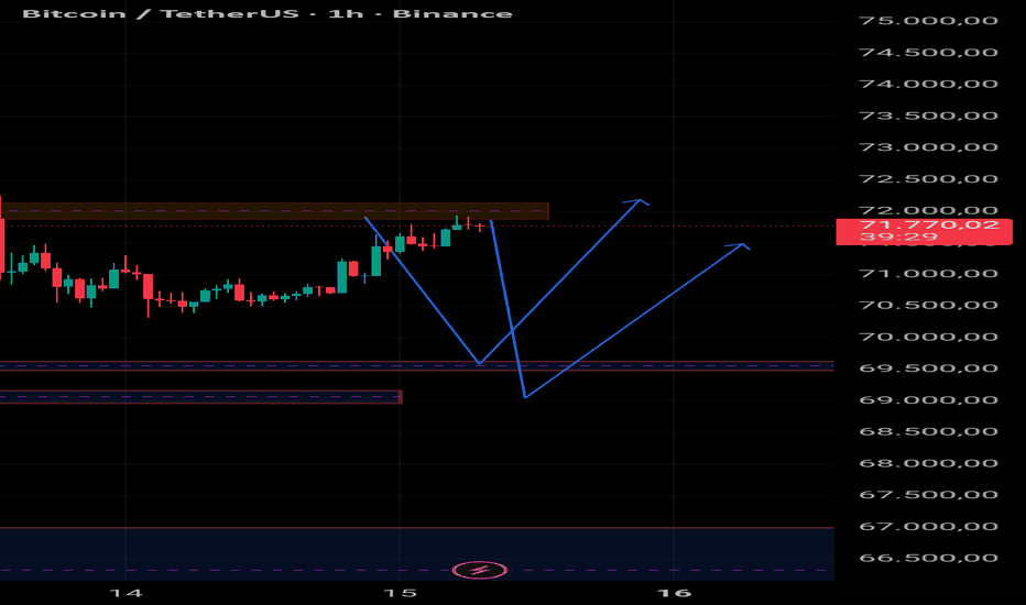 Mis entradas estarían en los niveles fibo dentro de la zona marcada con targets por la zona de 71.7 con salida en la zona