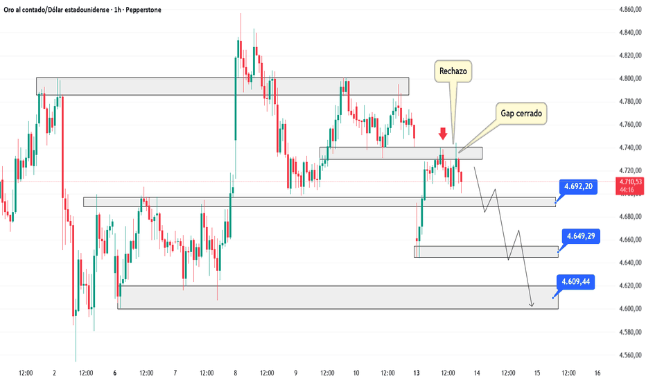 XAUUSD: Rechazo en el "Gap Fill" – Venta ConfirmadaEl Oro (XAUUSD) muestra actualmente una estructura bajista clara tras haber validado un movimiento de "Gap Fill", donde el precio retrocedió hacia la zona de desequilibrio creada por el impulso alcista previo para luego enfrentar un rechazo (rejection) contundente en la resistencia de 4.740, confirm