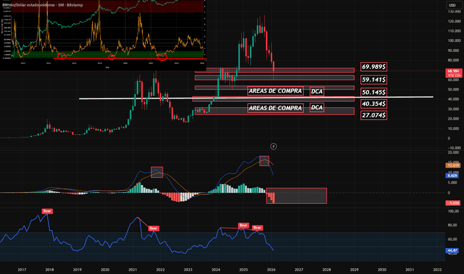 Bitcoin 2026: Hoja de Ruta y Niveles Críticos de AcumulaciónDespués de ver cómo el mercado se estiró hasta los $126,000 a finales de 2025, el ajuste que estamos viviendo ahora no me asusta; de hecho, lo estaba esperando. He limpiado mi gráfica y tengo claros los puntos donde voy a entrar con DCA de forma agresiva (Dollar Cost Averaging) para acumular antes d