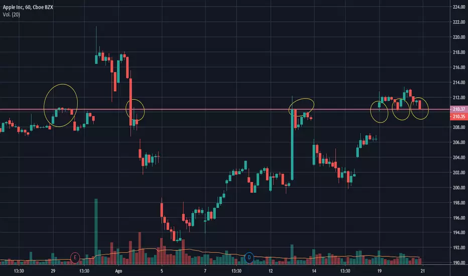 AAPL detuvo su caida en posible zona de soportes en escala Horaria.