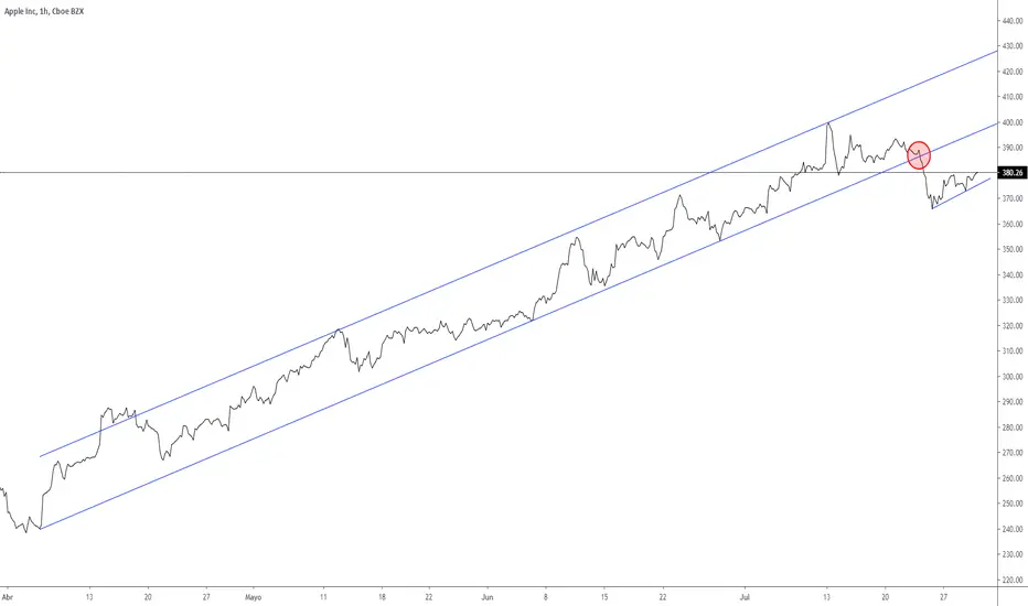 Hace unos días, Apple quebró a la baja un casi perfecto canal de tendencia alcista de corto plazo para continuar su ciclo positivo. Un claro ejemplo del comportamiento de una sana corrección de una empresa sólida.