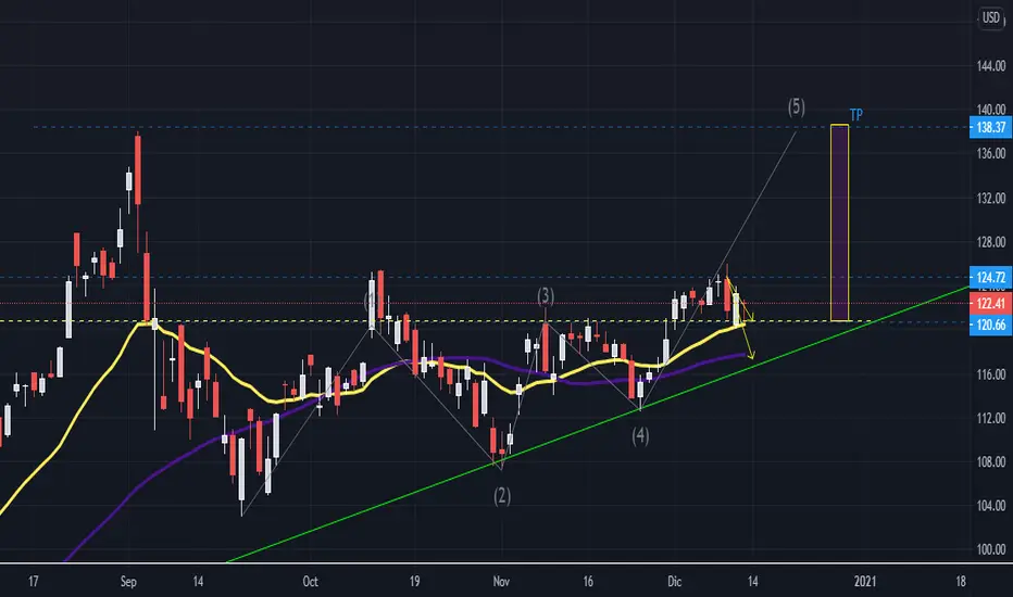Ando bullish con este stock y para mi punto de vista pienso se va ya en mi analisis trazo una resistencia en los 124 lo cual haria un triple techo el cual por el super soporte que trae a mi punto de vista lo va a hacer y rompiendolo tiene todo el camino libre para llegar a la toma de beneficio o precio objetivo como gustes denominarlo a los 138 usd.