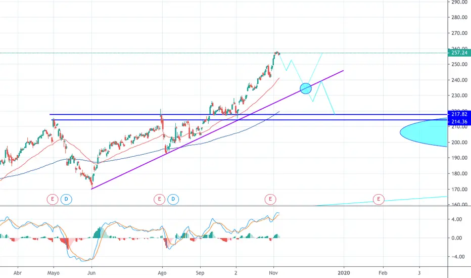 Apple probable corrección a zona marcada. Objetivo linea alcista.