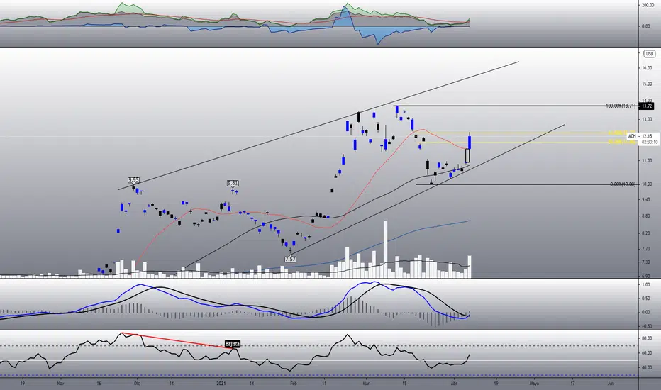Muy buen quiebre de la MA de 21 y del 50% de FIBO, pero por ahora fallando contra el 61.80%., MACD dando el cruce de compra.