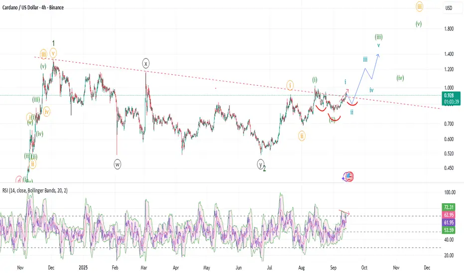 ADA is slowly setting up for a move. Looking for a short term retrace to setup an inverse head and shoulders pattern. Right now, 1 hour RSI has bearish divergence. This dip will reset the momentum and should setup for a big move. There will be several degrees of wave 3 starting at this time, so, I would expect something rather explosive. If it not coming out of the gate blazing, then something would not be right. It would be easier to set a stop loss. Right now, I will deploy a bit more capital on the upcoming dip to make the bag heavier.