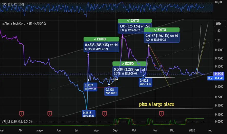 con objetivo a largo plazo ,esta acción nació en 400 dólares, toco lo 0,15 centavos y hoy esta 0,43 , mañana llevaré todas las que pueda para largo plazo,esta acción repite patrones como qubt ,que en estos mínimos salió a flote dejando entre 20.000% y 2.000% en un par de años ,chequen la info