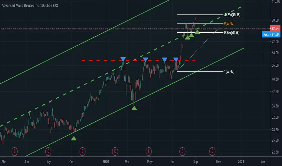 ADVANCED MICRO DEVICES (AMD).. Marcando la Mediana, vamos a ver si la aguanta para salir al alza nuevamente o se va para abajo metiendo buena corrección.