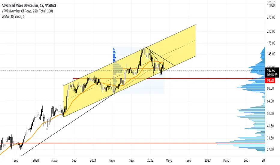 Por ahora respeta canal Alcista. Hay que ver como reacciona a la linea de tendencia, para pensar en una entrada y buscar los máximos históricos. Todavía no pudo con la VMA 30 semanas.