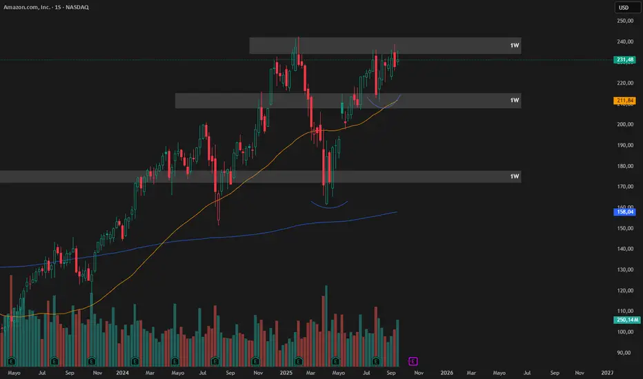 Vemos como desde la rotura de los antiguos máximos en 178$ ha testeado el soporte junto con la media de las 200 semanas y la recuperación de la media de las 50 semanas. Actualmente se encuentra en la zona de resistencia lateralizando, por lo que pronto podríamos ver o un intento de rotura o una búsqueda de la SMA50 para coger impulso