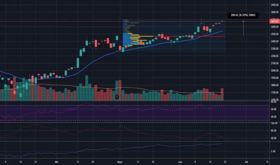 El 8 de Junio se alejó de la zona de máximo volumen operado por VPVR indicada en el gráfico y desde ahí continuó subiendo.
