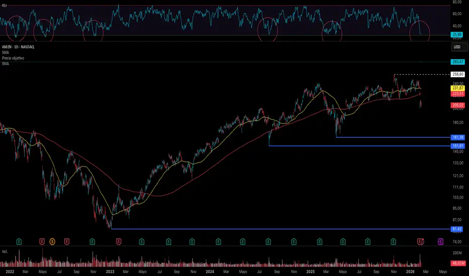 Comienza a mostrar parametros de sobreventa interesantes, que antecede a zona de suelo y rebote importante. Así ha ocurrido las 5 anteriores ocasiones desde el año 22, cuando ha llegado a valores de RSI 25.