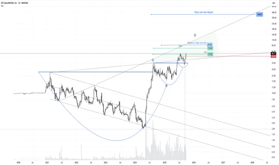 Gráfico semanal de ASTS donde se proyectan los precios que podría alcanzar en el futuro si no se estropea la fractalidad, la iremos siguiendo apoyándonos de Elliott para ver con mayor precisión los movimientos a más corto plazo