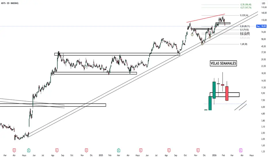 ASTS empieza a mostrar signos claros de agotamiento tras el fuerte impulso alcista previo. El contexto actual invita más a prudencia que a buscar nuevas entradas largas.