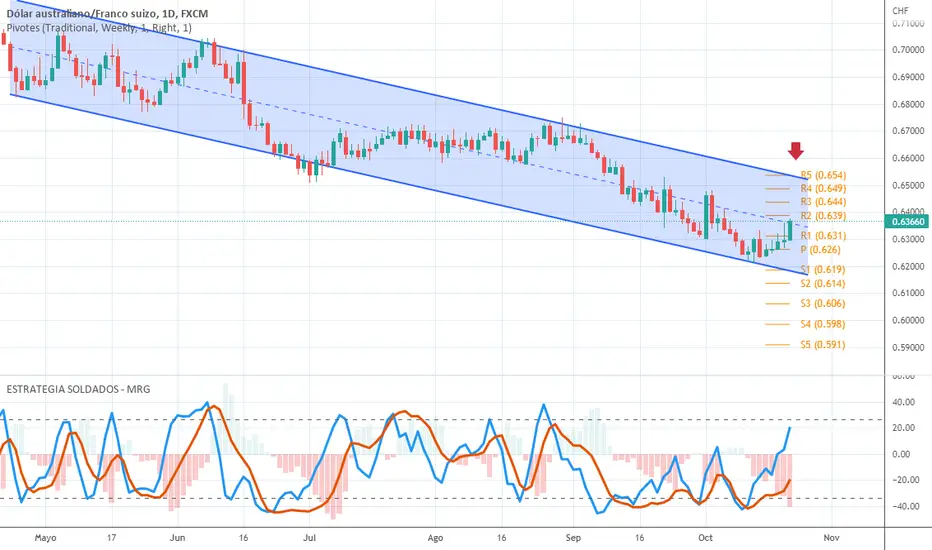 El precio reboto en la linea inferior del canal bajista. Ahora esperaremos a que suba hasta la zona de 0.6500 , donde realizaria un tercer toque en la directriz bajista y que coincide con la zona del 50%-61% Fibo de retroceso del ultimo impulso bajista.
