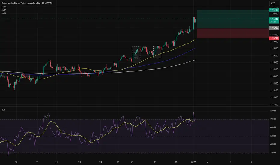 AUDNZD is trading in a strong bullish structure across higher timeframes. Price recently delivered an impulsive move to the upside, breaking previous highs, which places the market in a premium zone.
