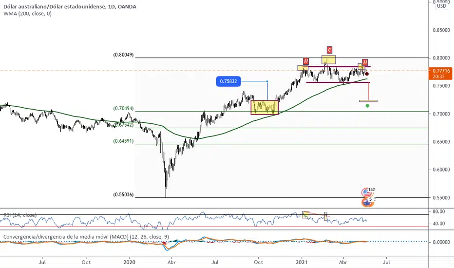 Buenas tardes. Se esta formando un HOMBRO-CABEZA-HOMBRO en la divisa AUDUSD. En el RSI existe una divergencia bajista con respecto al maximo anterior de esta divisa. Atento con el rompimineto del cuello de esa formacion y pullback, la cual da como 1er objetivo 0.72480. ESPERAR CONFIRMACION. Saludos