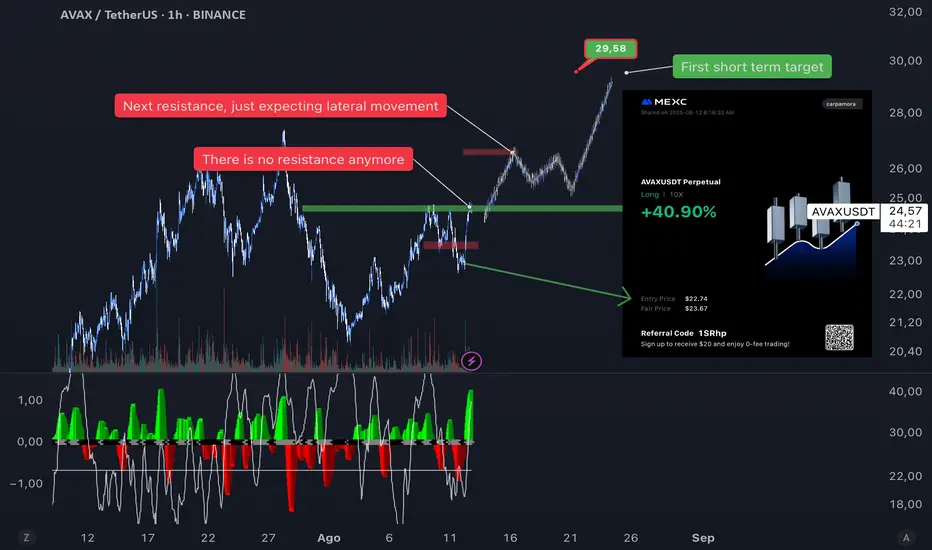Price action remains strong with no significant pullbacks so far. I’m still expecting an upward move, possibly with a brief range around 27 $ before targeting good profit-taking opportunities near 30 $.