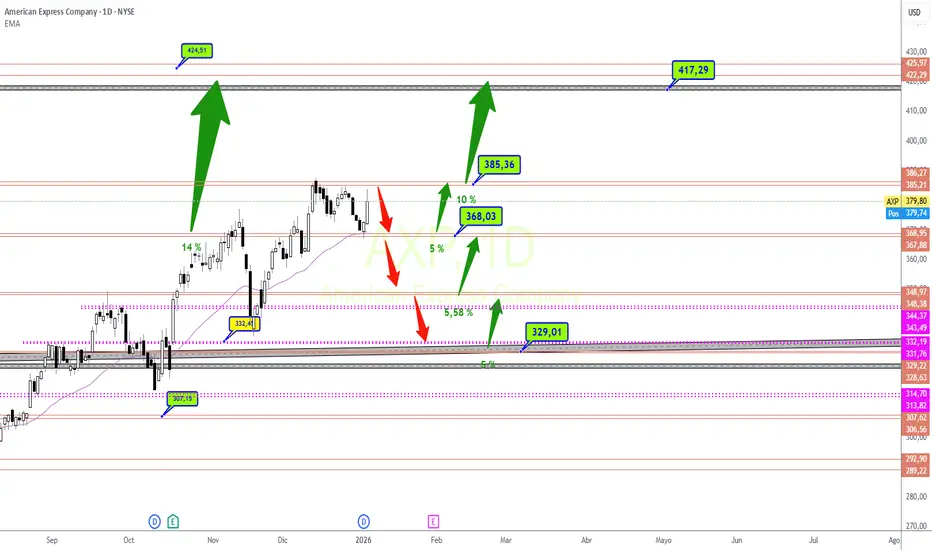En las últimas semanas la acción llegó a marcar máximos históricos y, como suele pasar, apareció una toma de ganancias lógica. No es señal de debilidad estructural, sino más bien una pausa después de un rally fuerte. El mercado empieza a preguntarse si el precio ya descuenta todo lo bueno, pero lo cierto es que American Express continúa generando ingresos sólidos, mantiene una morosidad controlada y sigue apostando fuerte a recompra de acciones y pago de dividendos.