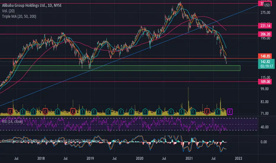 El precio de BABA se encuentra llegando a la zona del GAP al alza que se produjo en enero de 2018. Es posible que el precio busque cerrar ese GAP y consolide en esta zona un soporte fuerte que ya ha sido testeado en el pasado.