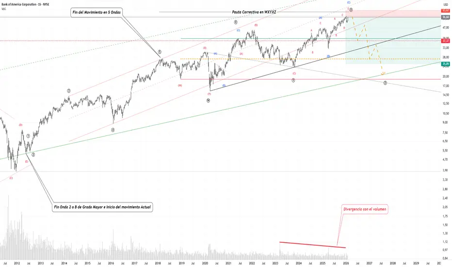 El último impulso de la cotización se inicia en Mayo de 2012 y finaliza en Marzo de 2018. Desde entonces se encuentra transitando una pauta con estructuras correctivas en WXYXZ, en breve (seguramente la semana que viene) finalizará el penúltimo movimiento de esa estructura e iniciará la última estructura (Z) a la baja.