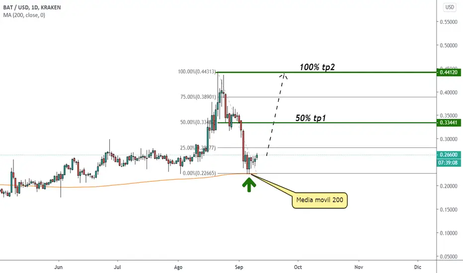 Vemos que BAT acaba de tocar la media móvil de 200 como zona de soporte con increíble precisión, esperamos que junto al alza de las demás altcoins BAT se dispare to the moon!!!