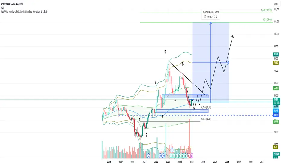 Cómo adición, el retroceso desde maximos nos da a entrever la finalización de un primer impulso para continuar subiendo y duplicar su precio actual, esto basado con las ondas de Elliot