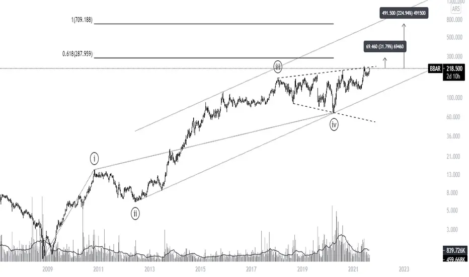 Proyección de 5 para BBAR en pesos argentinos. Estructura similar en el resto de los bancos.