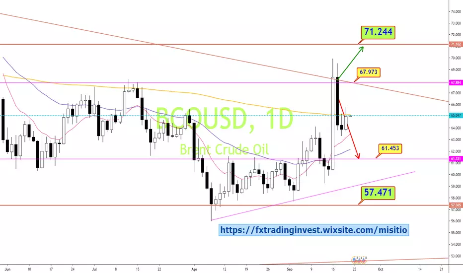 El crudo brent ,después del atentado en Arabia saudita no pudo romper los 68 dólares el barril, fue rechazado inmediatamente cerrando el dia de hoy en 65, esperamos verlo de nuevo en los 61.45, en contraposición, si llega a romper los 68, tenemos resistencia importante en los 71 dólares