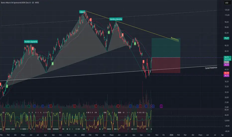 Parece tener buen soporte en los 40 dólares y además está en trampa bajista por debajo del canal de largo