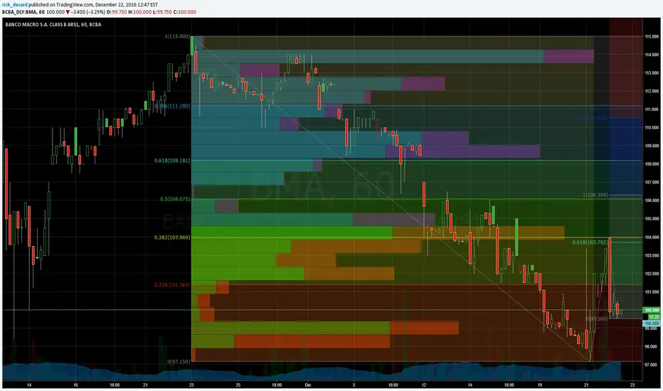 BMA continua luchando por una definicion del soporte de 100, si logra no solo sostenerse sino evitar hacer un nuevo minimo el obj mas probable de rebote seria 106,07/106,3. El stop claramente es el nuevo minimo en 97, mientras que el obj alcista coincide excepcionalmente con una zona de baja actividad de volumen