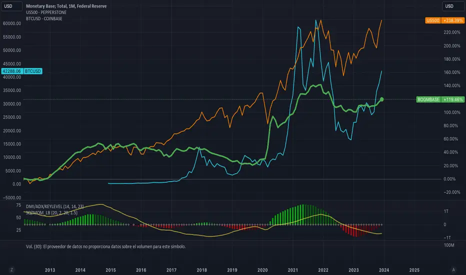 Esta idea rompe muchos esquemas pero insistimos, que el análisis técnico ayuda pero conocer las tendencias macro te dará una gran ventaja. Para el caso de BTC, que ha día de hoy sigue siendo visto mayormente como un activo especulativo y si además conozco la tendencia de "interés abierto" de Bitcoin, puedo predecir tendencias asegurarme de encontrar zonas de acumulación o de distribución. Para trading posicional es vital conocer esto y para swing trading te puede dar una gran ventaja competitiva. Con estos datos solo podemos esperar lateral o caída para las próximas 10-12 semanas. Veremos si las reuniones de la FED nos cambia el escenario o lo acrecenta.
