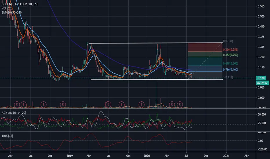 Amplio canal lateral de largo plazo para el papel que últimamente se soporta en la LT inferior y utiliza como resistencia de mediano plazo las EMA de 20 y 50 períodos.