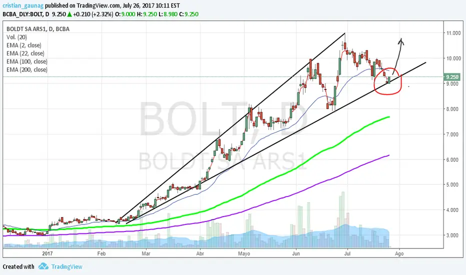 Boldt se encuentra en zona cercana a posible soporte técnico. $10,30 podría ser resistencia. Veremos qué dice el mercado.