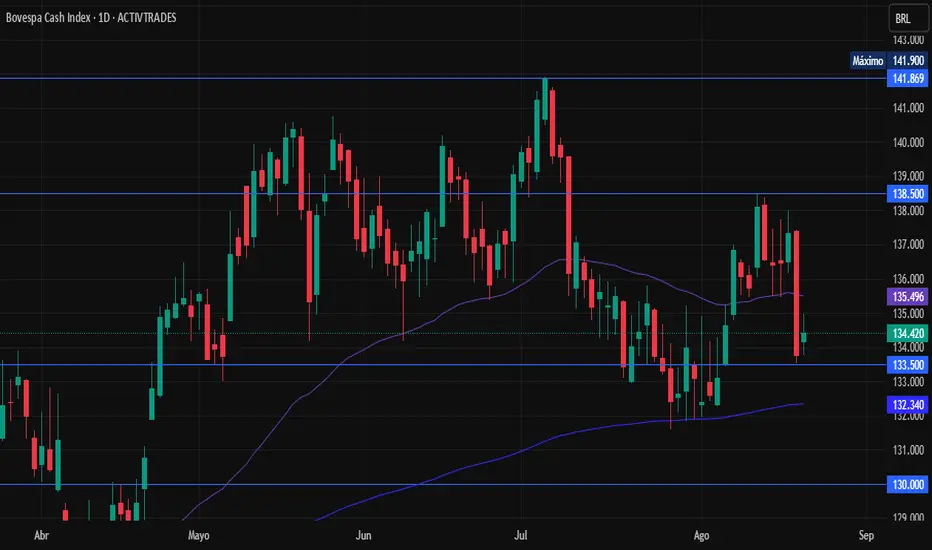 Hacia abajo, el soporte más relevante para el Bovespa, por debajo del mínimo en los 133.500 puntos, podría estar en la media móvil exponencial de 200 días, la cual se encuentra actualmente alrededor de los 132.340 puntos.
