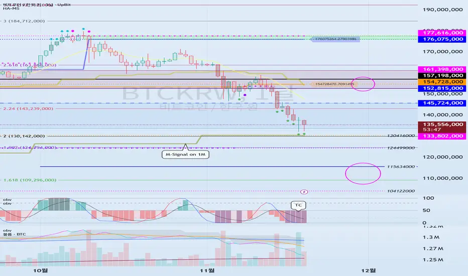 133802000-145724000 이하로 1M 차트의 M-Signal 지표가 지나가고 있기 때문에 이 구간 부근에서 지지 여부가 중요합니다.