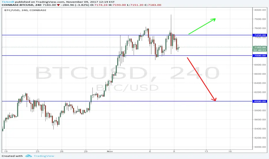 Si el precio rompe el soporte en la zona del 7.000, es probable que haga un retroceso fuerte hasta la zona del 6.000.