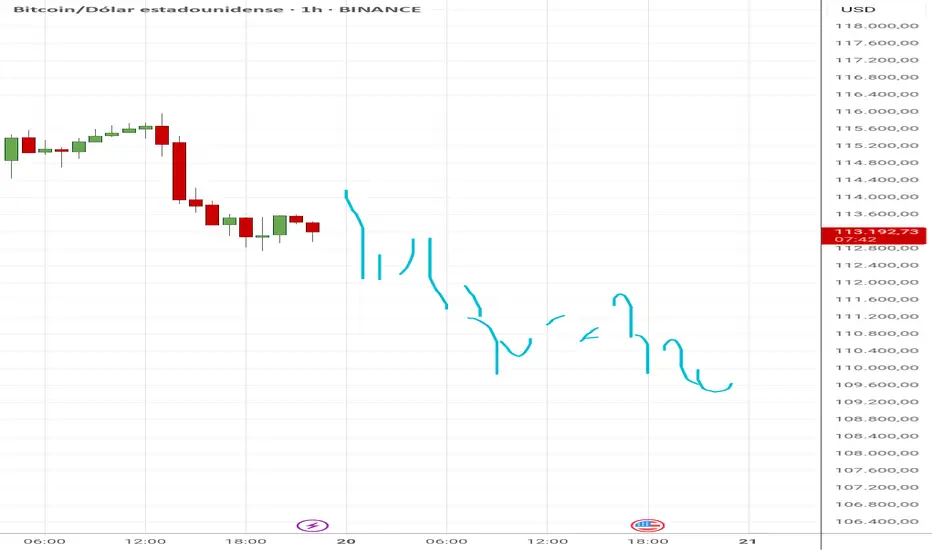 Pronóstico para el 20 de agosto de 2025: la continuación de la caída de Bitcoin, desde el principio hasta el final del día, dibujé mis sentimientos en el gráfico publicado en este post, el principal movimiento hacia abajo, creo que será en la mañana.