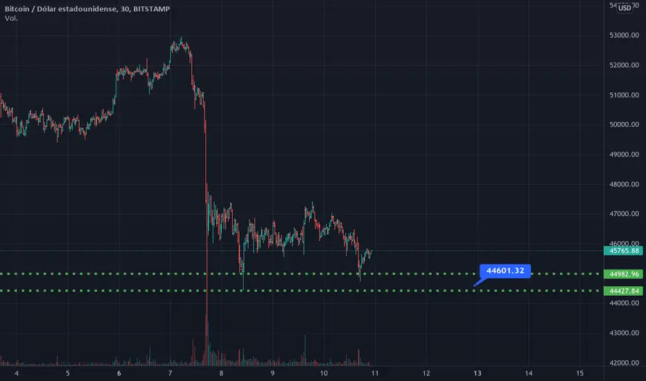 Recomendado operación larga desde zona inmediata de soporte de precio. Mantener compra siempre y cuando BTC sostenga por encima de 44.5k.