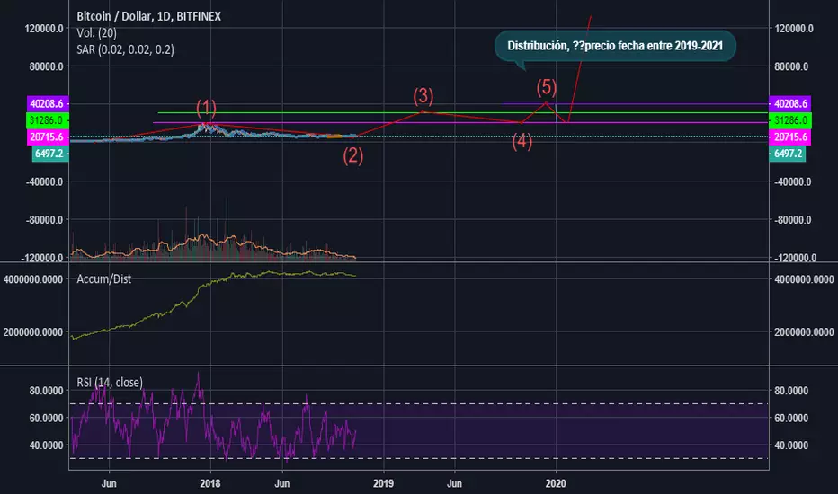 Por lo visto en diciembre de 2018 el BTC no fue completamente distribuido, posiblemente esté encaminado a su completa distribución. Éste sería uno de esos posibles caminos, es imposible predecir el precio donde será distribuido, la situación del mercado me hace pensar que se encuentra en una onda de elliot camino a la distribución, según las ideas de wyckoff