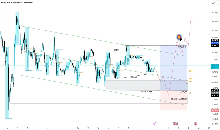 🚀 Take Profit (TP): 98,864 USD (fractal H4, confluencia de resistencia)
