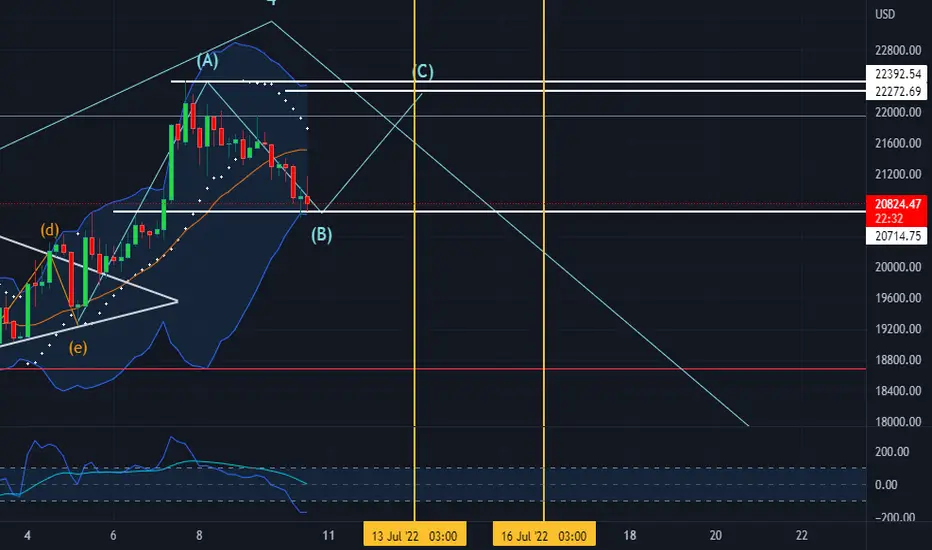 Altas probabilidades que aproximadamente el 13 de julio estemos llegando a la finalización de la onda 4 en el Diario. Por lo que si se trata de una onda C en en el de 4h, estaríamos aproximadamente el 16 de julio volviendo a caer como lo hicimos el 12 de junio.