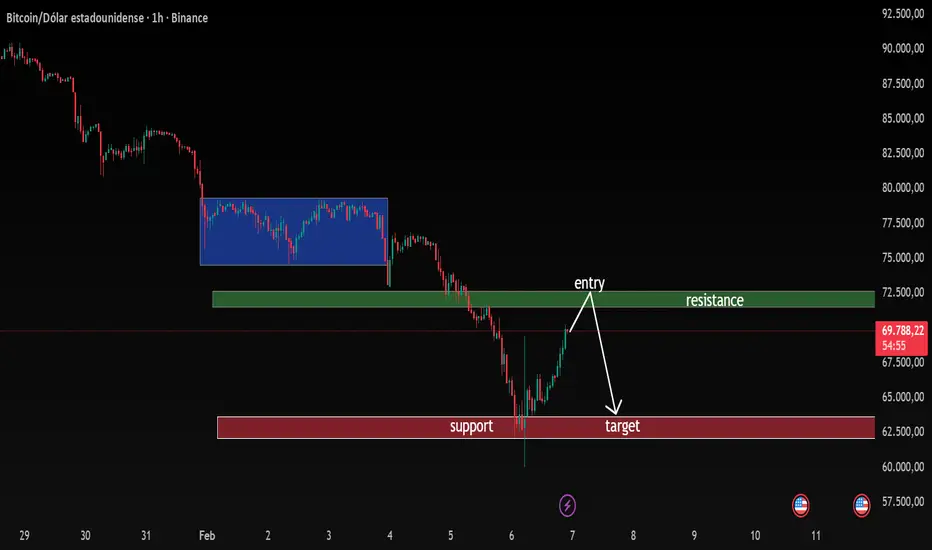 Objetivo: Soporte previo / zona de liquidez alrededor de 63k
