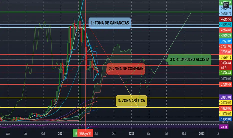 Mi conclusión y proyección es que lo más probable es que el valor regrese a los 27,000 USD; si no logra mantener ese valor caería a la zona crítica del soporte anterior en los 20,000 USD pudiendo oscilar a causa de un desplome en el rango de 20K y 15K USD; si lograse mantener los 27,000 USD. En ambos escenarios se daría por concluida la fase correctiva del valor, invirtiéndose la tendencia previa acumulación y dando así por comenzada una nueva fase alcista o extensión que nos llevaría hacia el máximo histórico. Otro escenario podría ser que el retroceso culminara en el valor actual y que después comenzara la nueva extensión que nos llevaría hacia el máximo histórico.