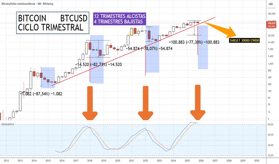 Dichos crash han encontrado como mínimo un derrumbe de -77%, lo cual podría llevarlo de aca a un año hacia los 30000 dólares aproximadamente.