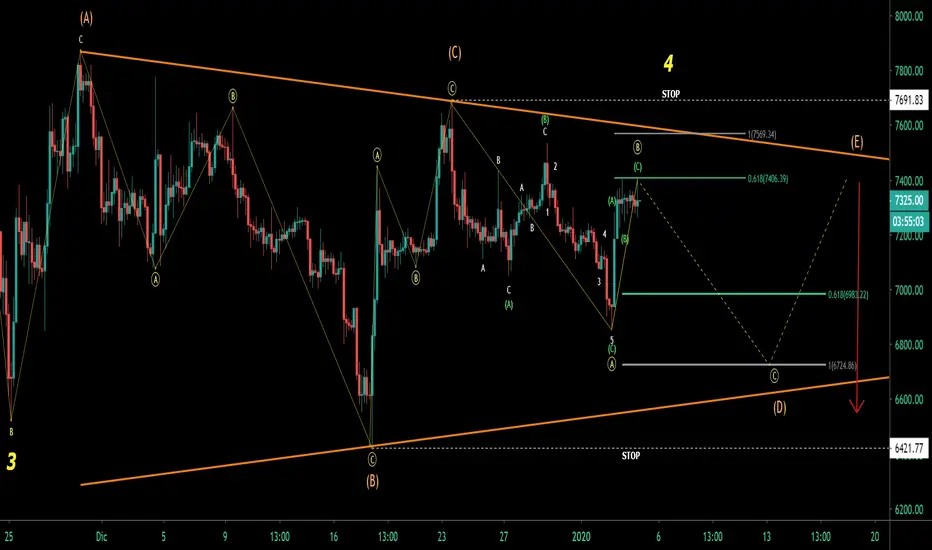 Creo que podria estar el precio ya rumbo hacia (D) pero por si acaso tengo una orden para ampliar el corto en la zona del nivel de los 7569$. Si se diera este caso, habria que ajustar nuevamente los niveles para (D).