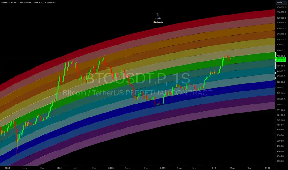 Gráfico arcoíris de Bitcoin BTC🌈El canal colorido es la línea de resistencia para el aumento de los precios de Bitcoin y la línea de soporte para la caída. El azul y el morado son la parte inferior, el azul fluorescente y el verde son los relés, el verde y el amarillo son la vía intermedia, y el naranja y el rojo. son los mejores.
