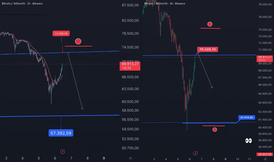 Cierre de vela por debajo de 69200 corrección