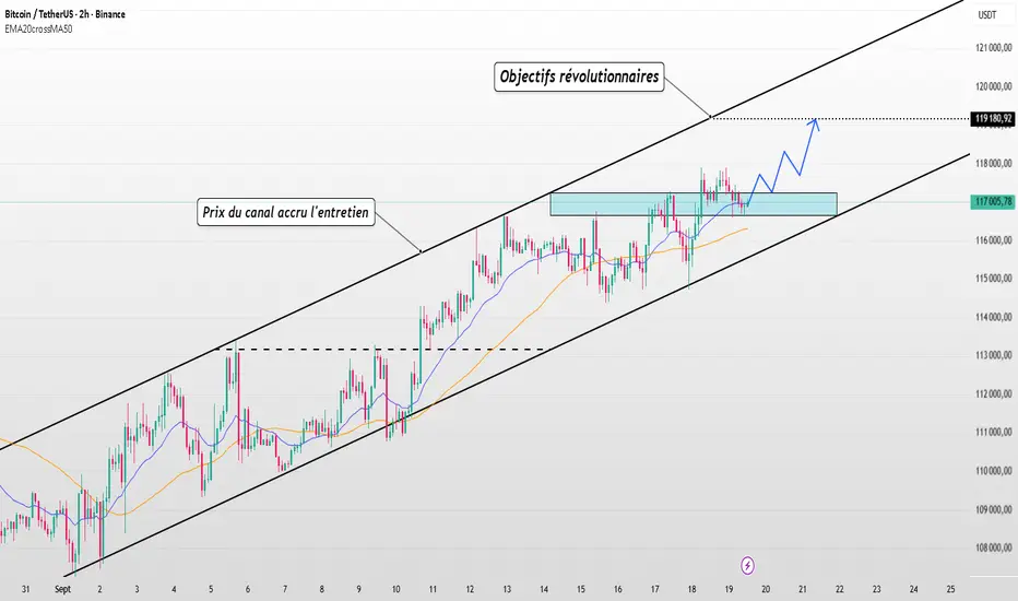 👉 À mon avis, le prix maintiendra le soutien du canal croissant et permettra de la zone cible de 119 180.
