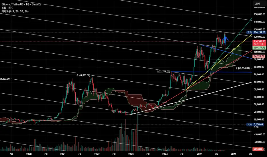 현재 107,000 부근에서 부터 분할 매수를 진행하고 이 패턴을 파악 후 계속 지켜보는 중이고 117,000 부터 분할 매도 들어갈 예정이야!