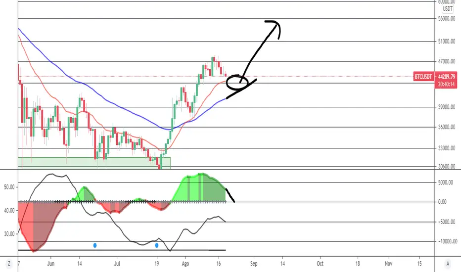 El gráfico diario tendrá su respectivo retroceso, seguimos en una zona de rango por lo que aún se puede buscar una mejor zona de entrada.Se compró en los 44200 para acumular y no se cierra aún hasta que en el grafico semanal nos de la salida